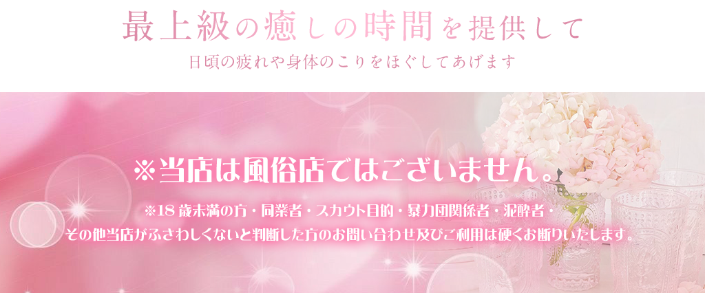 あなたの毎日にもっともっと癒しをプラスしよう。皆さん、こんにちは! かわいいセラピスト達による恋人感覚アロマエステ若いセラピストが多く在籍で御座いますので突発出勤♪お気に入りのあの子が出勤確定♪なんて事も多々ありますよね♪(^O^)♪